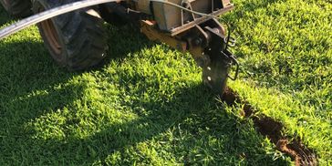The process of plowing uses a vibrating blade to split the ground, and cut a narrow slit that can be packed as the plow moves along very easily. This causes minimal disruption to landscape.